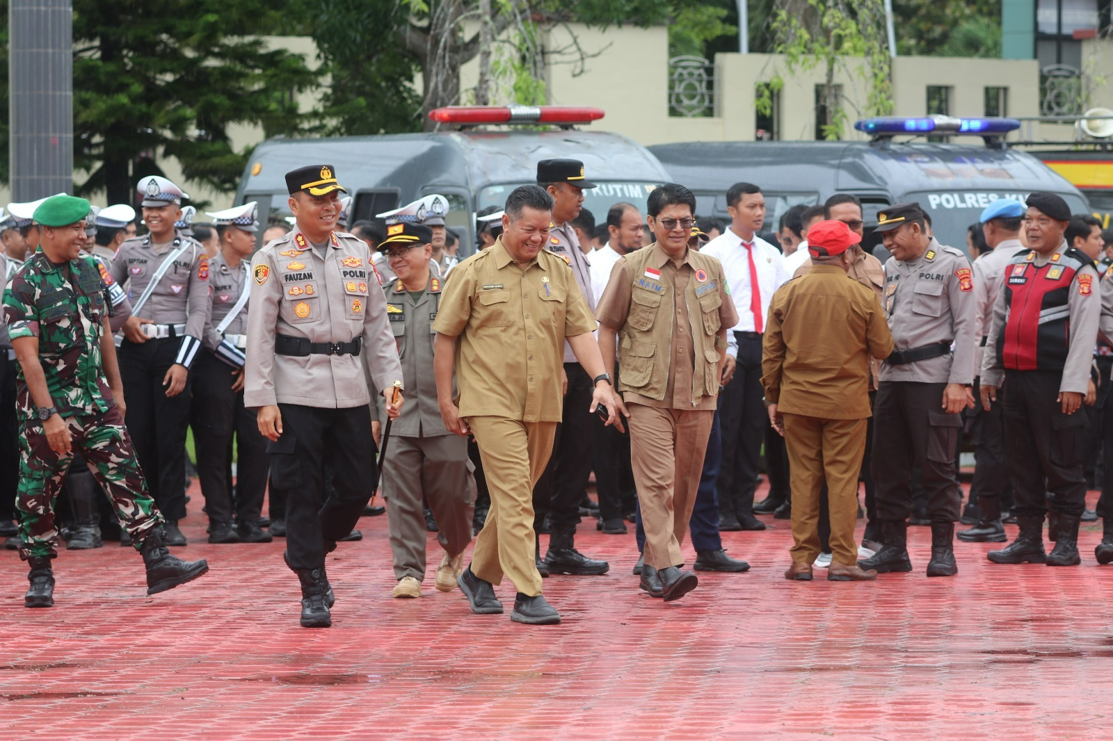 Apel gabungan ini dipimpin langsung oleh Kapolres Kutim, AKBP Fauzan Arianto, yang menekankan pentingnya kolaborasi lintas sektor dalam menghadapi ancaman bencana. Turut hadir dalam kegiatan tersebut Plt Asisten Perekonomian dan Pembangunan Setkab Kutim, Noviari Noor, Kepala Satpol PP Kutim, Fata Hidayat, serta unsur Forkopimda Kutai Timur.