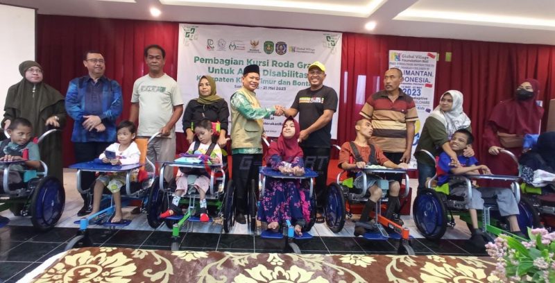 SANGATTA – Yayasan Kampung Sedunia atau Global Village Foundation (GVF) berkolaborasi dengan Badan Amil Zakat Nasional Kutai Timur (Baznas Kutim) membagikan bantuan kursi roda khusus kepada 40 Anak-anak penyandang Disabilitas di Kabupaten Kutai Timur (Kutim) dan Kota Bontang. Pada Sabtu (20/05/2023).